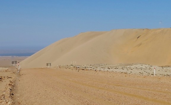 Il y a toujours une compagnie minière la Sperrgebiet Diamond Mining Elle interdit une gigantesque zone à partir de Kolmanskop jusqu'à la frontière Sud Africaine Mais le doudou aime les zones interdites et il a foncé , la barrière étant laissée ouverte Il y avait plein de panneaux partout " rescricted aera "Ou " prohibited aera "... qu'il n'a pas vu bien sur !