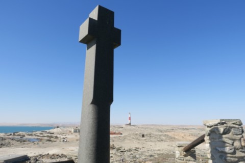 1 marin portugais , Barthelomé Diaz , arriva ici en 1488 Il a trouvé l'endroit sans intêrét Normal ... il n'y avait pas d'eau et pas de nourriture Il planta une croix en Bois ici qui a été remplacée bien sur depuis
