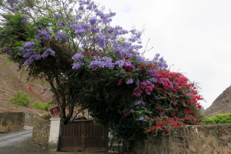 Un jacaranda et 2 bougainvilliers de couleurs différentes
