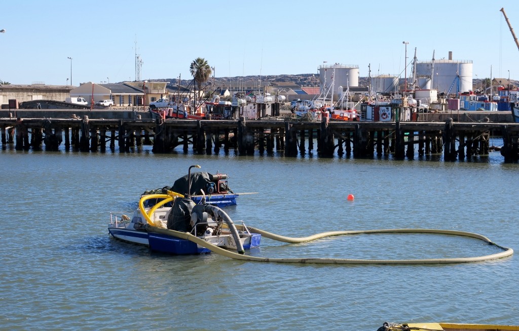 Nous sommes au quai du yatch club de Walvis Bay Nous sommes très bien mais il y a un gros problème à cause des méduses Il y en a beaucoup et elles rentrent dans les pompes : la pompe du groupe électrogène et celle du frigo Elles les bouchent et empèchent le refroidissement des moteurs