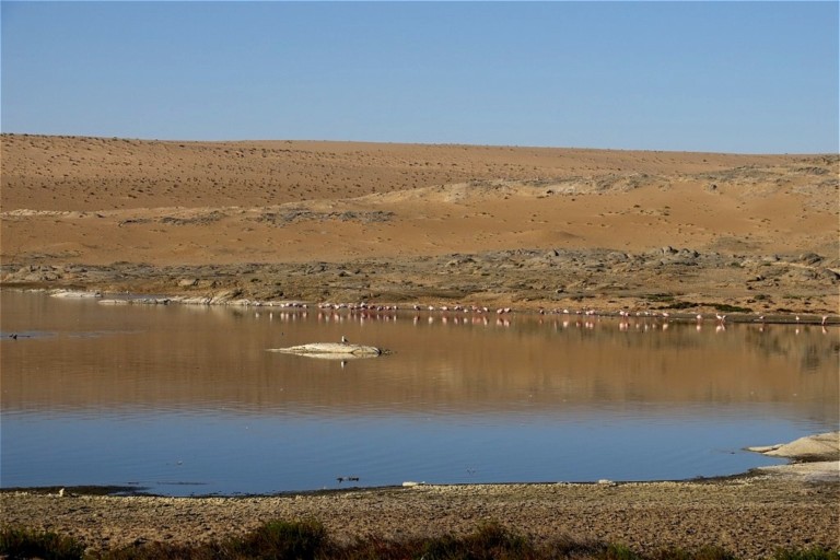 Nous quittons Luderitz et allons à Walvis Bay plus au nord Et nous mouillons à l'entrée de la baie car encore une fois nous sommes arrivés tard A la nuit tombante