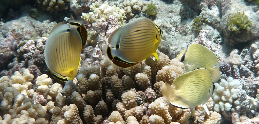 1 couple de chaetodons délavés font ménage avec 1 couple de chaetodons délavés .