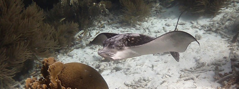 A Bonaire , 1 raie léopard très surprise de me rencontrer , m'a foncée dessus .
