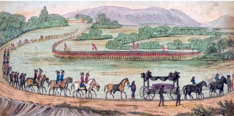 L'énorme cortège pour le transport de son tombeau à travers Sainte Hélène